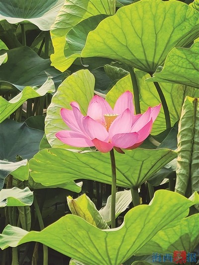 园博苑内荷花初绽,吸引不少市民游客寻花。记者 仇慧亮 摄