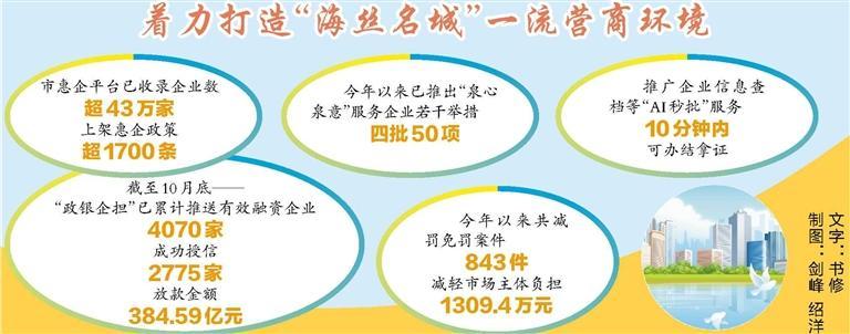 更多便民服务“掌上办”。今年以来,我市试点“智能审批”创新应用,深化“AI+审批”“AI+服务”,建设智能审批办理平台,推广企业信息查档等“AI秒批”服务,10分钟内可办结拿证;做好“码上办,马上就办”应用推广,依托“一体化平台”建设“专属数字身份空间”,打造政务服务“码上办”泉州品牌,已在全市政务服务中心推广应用。