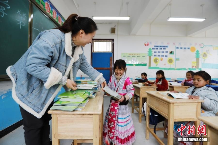 资料图:小学生领取新课本,开启新学期校园生活。图/CNSphoto 侯进勇 摄