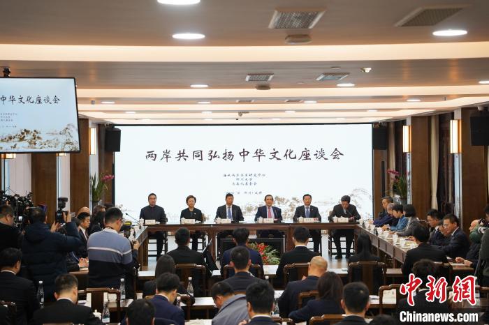 中新社成都12月23日电 (张杨彬 迟瀚宇)两岸共同弘扬中华文化座谈会23日在成都杜甫草堂博物馆举办。两岸知名文化学者、青年学生等约100人出席。