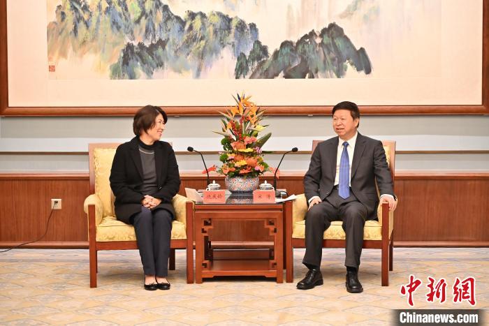 1月4日,中共中央台办、国务院台办主任宋涛在北京会见台东县长饶庆铃一行。图为会见现场。 中新社记者 徐雪莹 摄
