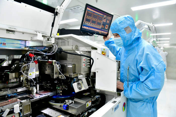 2025年2月13日,山东立国芯微电子有限公司工作人员在芯片生产线上工作。新华社记者 郭绪雷 摄