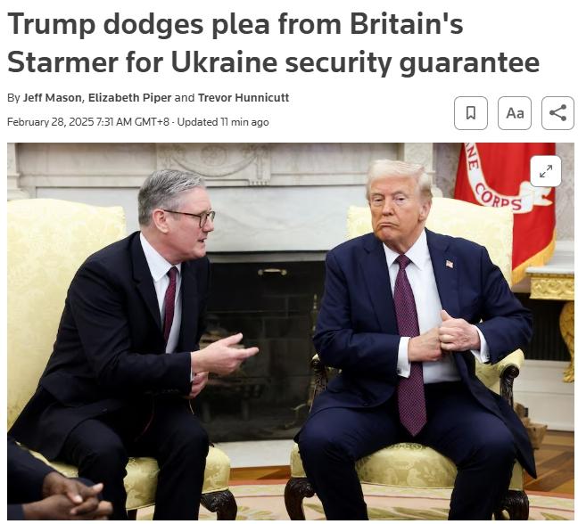 不过,对于斯塔默要求美国承诺对乌提供军事支持的观点,特朗普直接予以反驳。在当天的会谈中,特朗普表示,与乌克兰达成的矿产协议,就是乌克兰的安全保障。