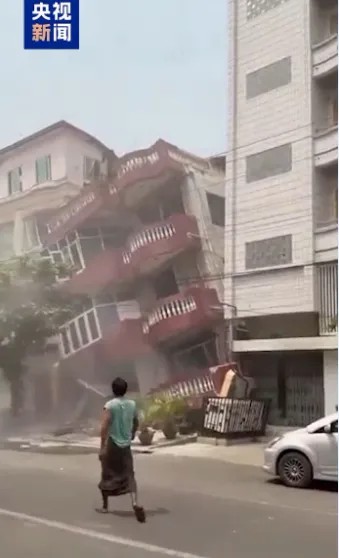 地震发生后,临近的曼德勒地区一栋建筑倒塌。距离震中较近的曼德勒的当地华人李艳彬描述了地震发生时的情景。
